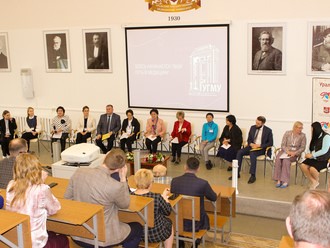 During three days of work 12 meetings with the University administration, heads of subdivisions responsible for programmes delivery, teachers, students, postgraduate students, graduates and employers were held. The experts visited 10 clinical facilities, departments, and classrooms and witnessed the use of АРМ and IT technologies at hospital units.